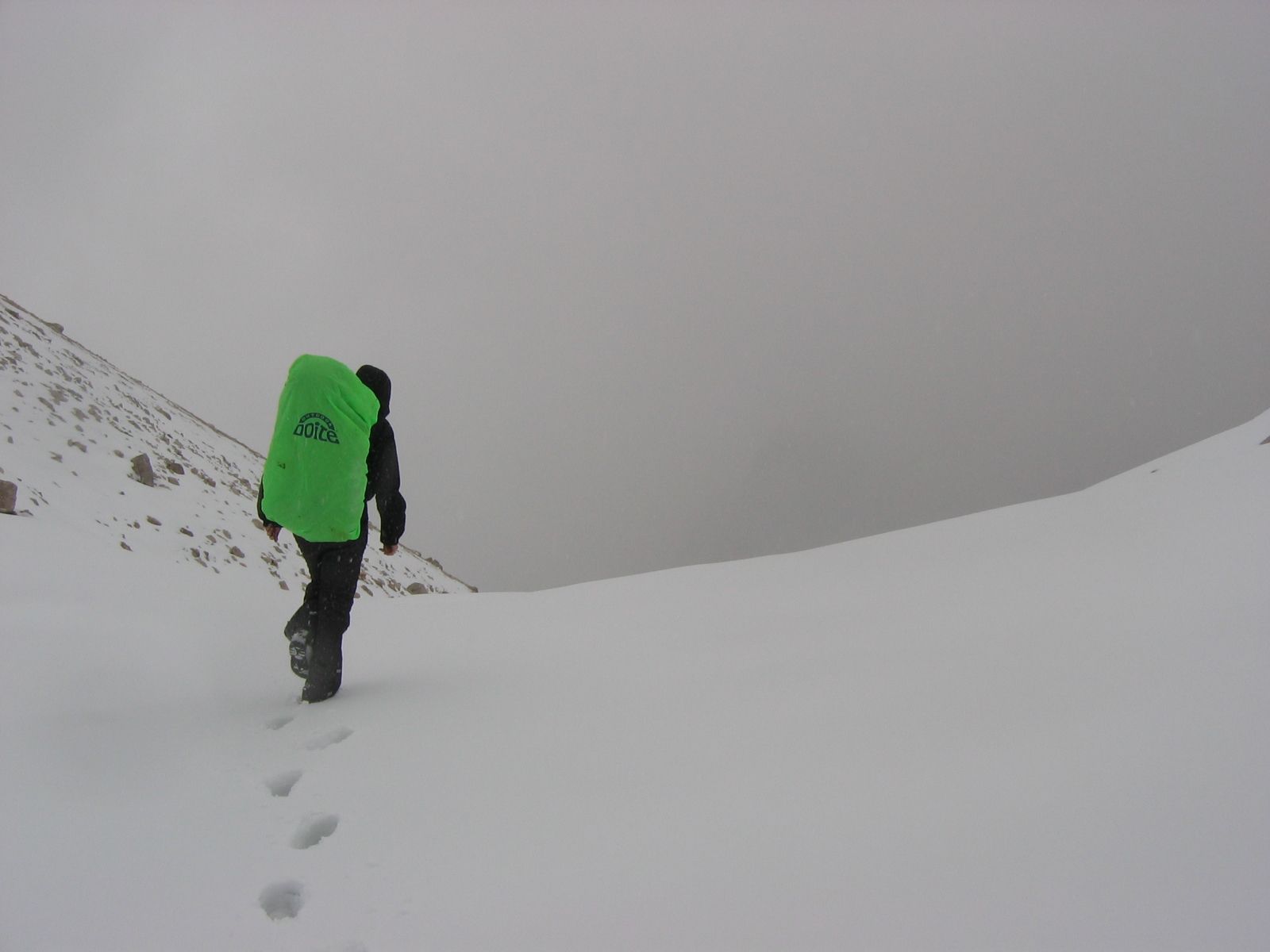 Wetterstein-Tour, Foto 06: Schneefall bei Sonn Alpin