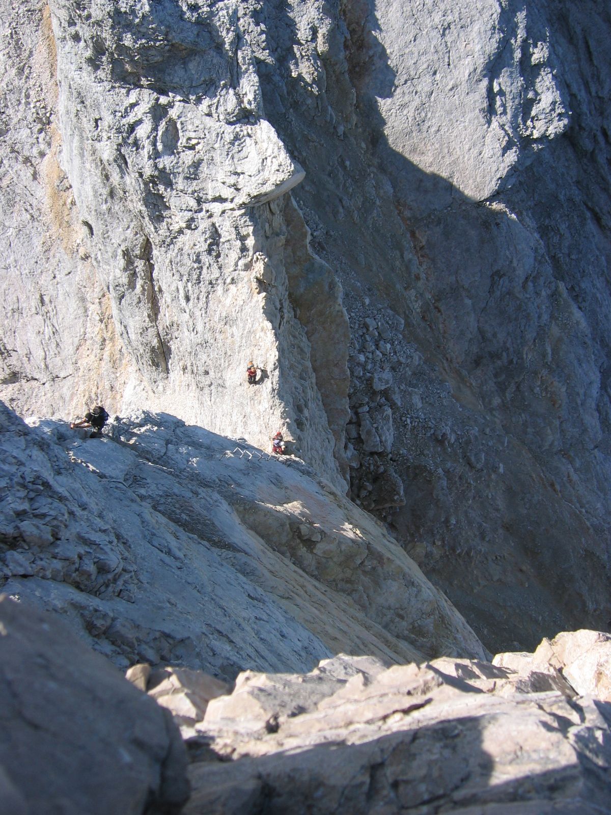 Jubiläumsgrat, Foto 11: Blick nach unten von der Vollkarspitze auf die Steiganlage