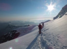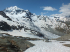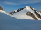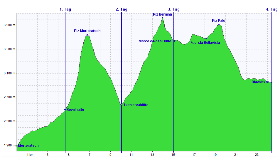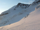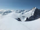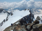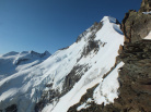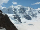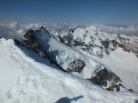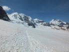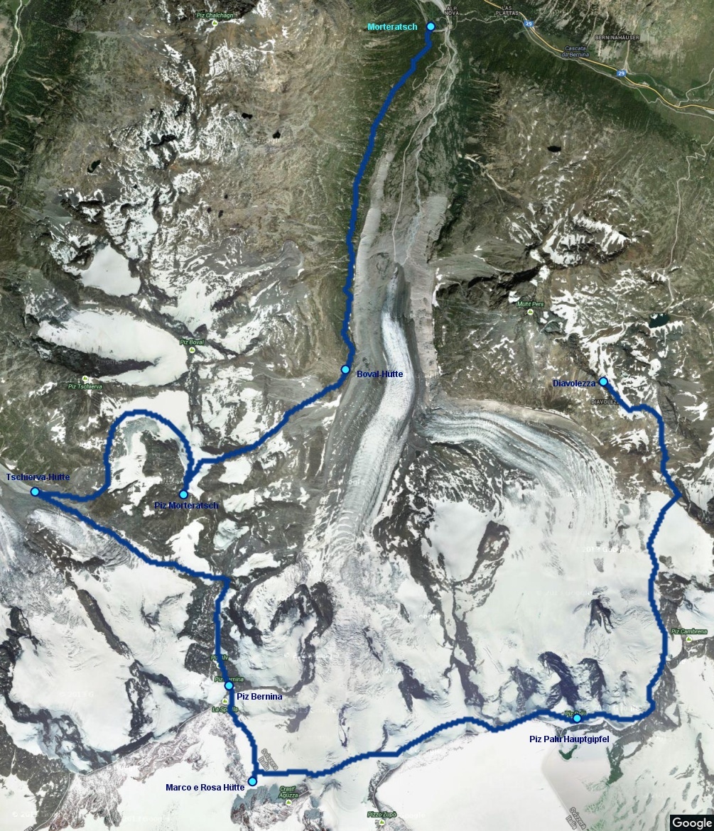 | Für den Frühsommer hatte ich mir eins der Hochtouren-Highlights vorgenommen: Die Bernina-Runde mit dem Biancograt! Eine der schönsten Touren, die ich bisher gemacht habe. Wir hatten sehr viel Glück mit dem Wetter, die Tour ist fast schon wegen den Wetteraussichten ausgefallen. Dann wurde es aber zum Glück doch noch gut, und wir hatten vor allem eine Schönwetterzone über dem Bernina-Gebiet! In anderen Teilen der Alpen war es zu dieser Zeit schlecht bis mittelmäßig - deshalb waren auch nicht viele Leute unterwegs, obwohl wir an einem Samstag auf dem Biancograt waren. Auch die beiden anderen Tourentage waren sehr schön. Der Piz Morteratsch ist schon eine schöne Tour an sich, vor allem wenn man vom Gipfel auf den wunderschönen Grat schauen kann, das Ziel des nächsten Tages! Der Biancograt wird ja schon sehr hochgelobt, aber er wird seinem Ruf gerecht! Vom Piz Bianco zum Bernina-Hauptgipfel haben wir aber schon noch ziemlich lange gebraucht, auch weil man häufig warten muss, bis die nächste Seilschaft weitergeht. Und bei uns waren nur 24 Personen auf dem Grat - an einem schönen Sommertag können es angeblich auch mehr als doppelt soviele werden! Die Überschreitung der Palü-Gipfel war dann noch der krönende Abschluss. Beim Aufstieg über den Spinasgrat auf den Westgipfel gibt es nochmal eine schöne ausgesetzte Kletterei, bis man am Hauptgipfel auf die Menschenmassen trifft, die von der Diavolezza aus aufsteigen. Insgesamt eine meiner persönlichen Traumtouren! |