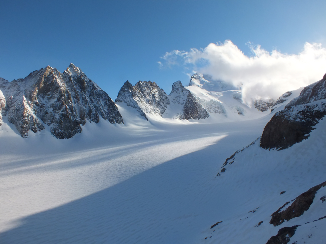 An diesem Moment haben sich die Wolken verzogen, und wir haben zum ersten Mal den Glacier Blanc gesehen!