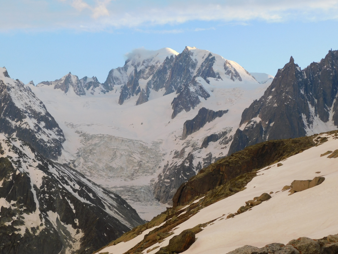 Blick auf Montblanc (hinter Montblanc du Tacul) von der Couvercle-Hütte