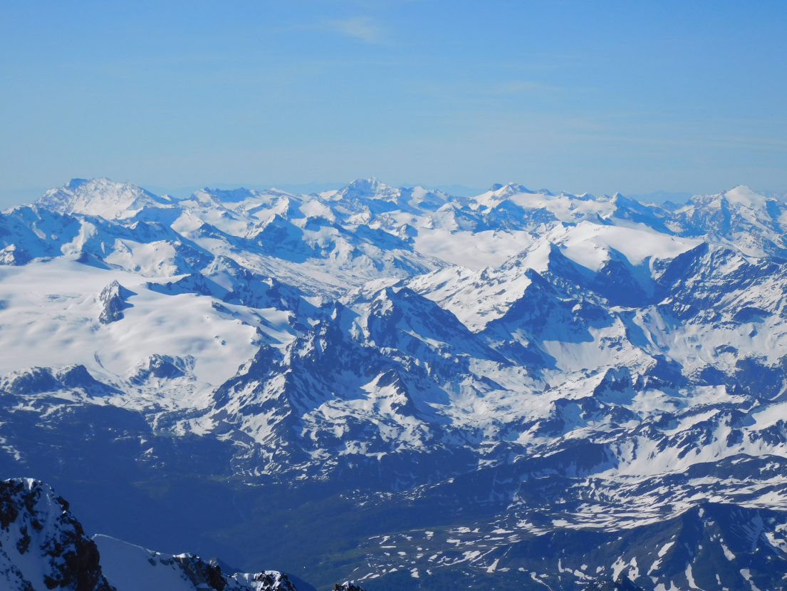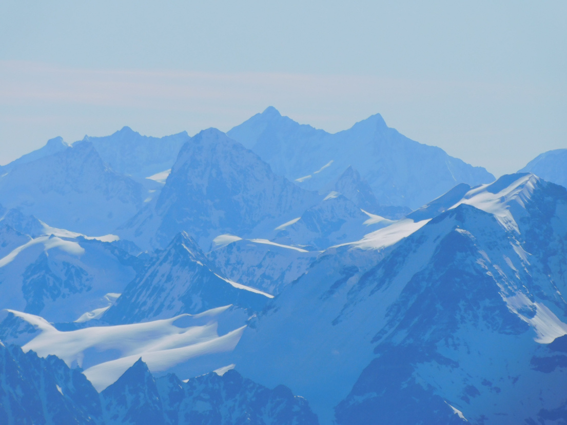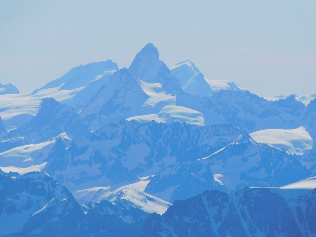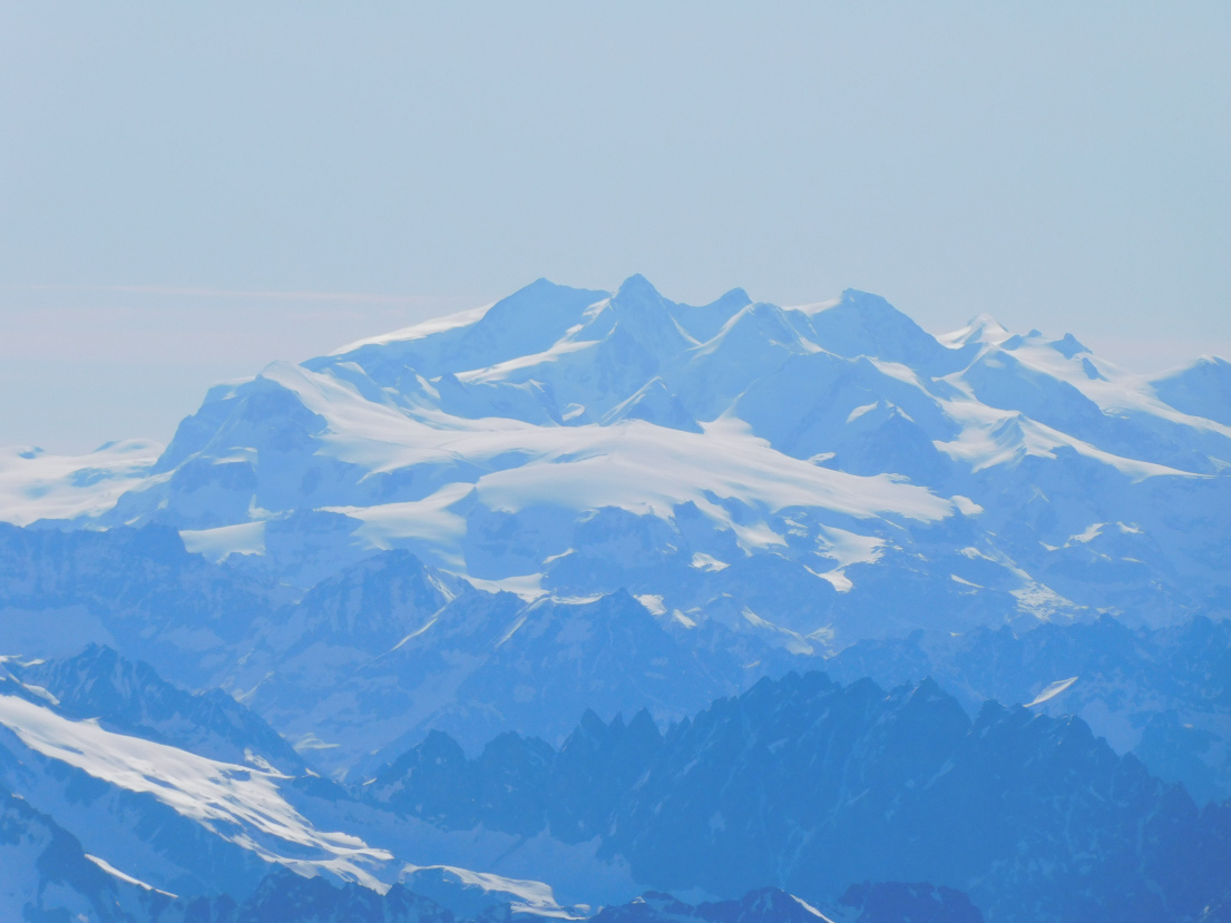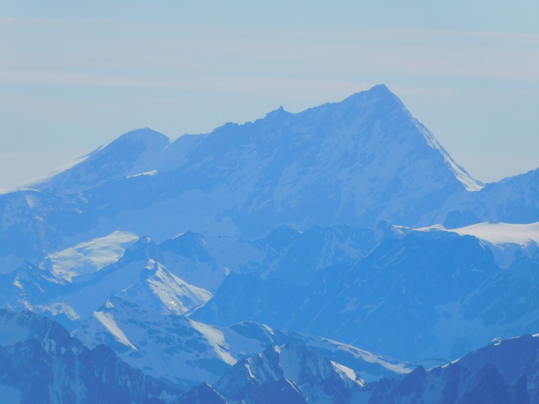 Nahaufnahme Monte-Rosa-Gruppe, in der Mitte die Dufourspitze