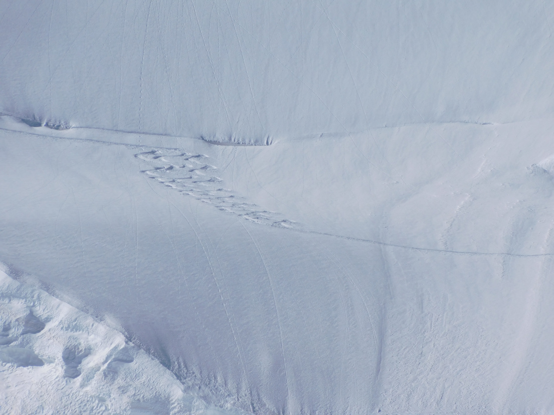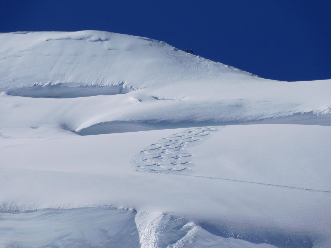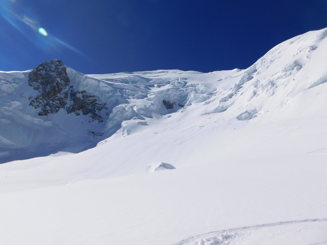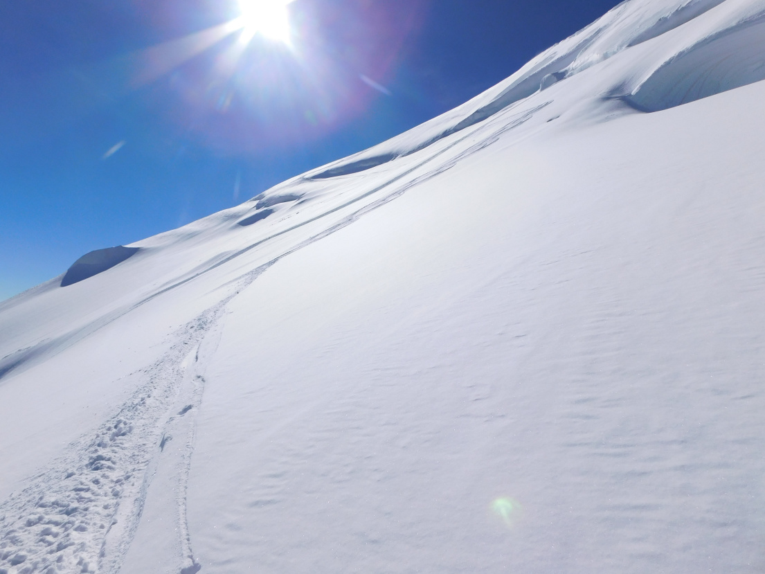 Hier waren wir beim Grand Plateau angekommen und haben erstaunt zurückgeblickt auf geniale 800 Höhenmeter Pulver-Abfahrt!