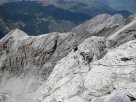 | Nach zwei Versuchen, die ich wegen Schlechtwetter schon vor dem Hüttenaufstieg abgebrochen habe, sollte es diesmal endlich klappen mit der Ortler-Besteigung. Da ich aber oft aus Erzählungen gehört habe, dass der Normalweg über die Payerhütte ziemlich voll ist, haben wir uns für den Meranerweg von der Berglhütte aus entschieden. Die Berglhütte ist eine urige, gemütliche Hütte, auf der wenig Übernachtungsgäste bleiben. Trotz guter Wettervorhersage waren wir an dem Tag die einzigen auf dem Meranerweg! Der Weg ist technisch nicht schwieriger als der Normalweg, aber ungefähr doppelt so lang (1700 Höhenmeter), was wahrscheinlich die Massen abschreckt. Gut für uns! So hatten wir unsere Ruhe, und erst beim Abstieg über den Normalweg haben wir einige der Leute gesehen, die von der Payerhütte gestartet sind (angeblich 60 Leute an dem Tag). Der Weg war in einem guten Zustand, sogar mit ausreichenden Markierungen! Nur eine heikle Stelle gab es: Auf ca. 3000m ist anscheinend durch einen Erdrutsch ein Teil des Steigs weggebrochen, und man musste einen steilen Bröselhang hochsteigen. Eine tolle Tour, die ich nicht gegen den Aufstieg von der Payerhütte eintauschen möchte! Diesen Weg haben wir dann sowieso beim Abstieg kennengelernt, was die Tour schön abgerundet hat. |