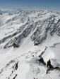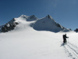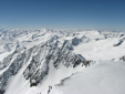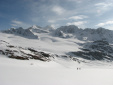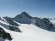 | Auf die Wildspitze wollte ich sowieso nochmal, weil ich das letzte mal oben in der Nebelsuppe gehangen bin, und nix gesehn habe. Diesmal hatten wir tolles Wetter, die Route von der Vernagthütte ist sehr schön! Zwar nicht gerade einsam, aber echt schön und abwechslungsreich. Die Aufstiegsroute zum Hinteren Brochkogel sah ziemlich interessant aus (Bild 02), da hat sich die Idee entwickelt, die Tour 2 Wochen später selbst zu probieren. |