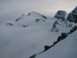 | Jetzt gings endlich los mit der Wallis-Tour! Erstmal 6 Stunden Autofahrt, dann nochmal 1 Stunde mit dem Bus, eine halbe mit der Seilbahn bis Felskinn, noch ne halbe Stunde zur Britanniahütte rüberqueren, und "schon" sind wir am Start! Von den fünf Tagen gingen 2 Tage fast komplett für An- und Rückreise drauf. Hat sich aber trotzdem gelohnt! Das Tourenziel für den nächsten Tag haben wir uns erst abends in der Hütte ausgesucht. Und wir haben mit dem Alphubel ein schönes gefunden! Die meisten Tourengeher kommen vom Längfluh-Berghotel, das etwas näher ist als die Britanniahütte. War eine sehr schöne Tour durch gut sichtbare Spaltenzonen. Und von oben konnten wir einen ersten Eindruck gewinnen, was uns Richtung Monte Rosa noch bevorsteht. Bei der Abfahrt konnten wir im unteren Bereich noch ein Stück auf der Allalin-Piste fahren. |
