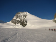 | Der Übergang von der Britanniahütte über den Adlerpass zur Monte-Rosa-Hütte wird im Vergleich zu den anderen Touren ziemlich selten gemacht. An dem Tag haben wir nur noch eine andere Seilschaft gesehen, die auf dieser Route unterwegs war. Ich schätze, die Strecke wird eher in der anderen Richtung gemacht, als Erweiterung von der Haute Route. Es war eine schöne Tour, mit grossen Gletscherüberquerungen! Bei gutem Wetter ist die Route gut zu finden, bei schlechter Sicht sieht das sicher ganz anders aus. Obwohl wir schon um 13 Uhr in Hüttennähe waren, sind wir auch schon in sumpfigen Schnee gekommen. Gut dass wir nicht noch später unterwegs waren! Die neue Monte-Rosa-Hütte ist schon ein richtiges Highlight! Von aussen ein Ufo das über dem Gornergletscher aufgeschlagen ist. Von innen aber schön gemütlich und modern eingerichtet! |