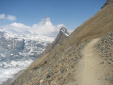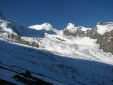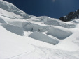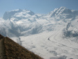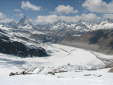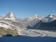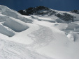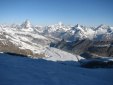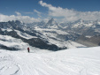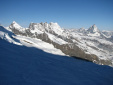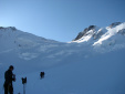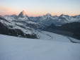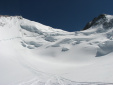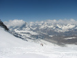 | Wir waren gut akklimatisiert, und waren rechtzeitig unterhalb des letzten Aufschwungs zum Silbersattel. Dort ist uns dann in der Spaltenzone leider eine Schneebrücke weggebrochen, so dass unsere Vierer-Seilschaft in zwei Hälften getrennt war. Für das Herübersichern auf die andere Seite haben wir viel Zeit gebraucht, und waren dann am Silbersattel zu spät für einen Gipfelversuch und eine sichere Abfahrt. Wir haben uns dann zur Umkehr entschieden. Einer von uns hat sich einer anderen Seilschaft angeschlossen, und hat den Gipfel erreicht. Glückwunsch! Uns anderen war es aber zu riskant. Die Entscheidung war schon gut, wir kommen sicher mal wieder zurück! Die Abfahrt war dann ordentlich lang, da sieht man mal was man alles hochgelatscht ist! ;-) Am nächsten Tag hat es dann auch nochmal drei Stunden gedauert, um zum Gornergletscher abzufahren, und nach Rotenboden aufzusteigen. Die Talabfahrt über den Gornergletscher ging nicht mehr. Von Rotenboden gings aber noch über die Piste, und später über die Forststrasse fast noch bis Zermatt runter! |