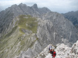 Den ersten Teil (das erste Drittel) vom Innsbrucker Klettersteig habe ich ausgelassen, weil mir das ohne Sicherung zu riskant war. Ich bin dann aussenrum, und ab dem langen Sattel und dem Kemacher wieder auf den Innsbrucker Klettersteig drauf, der ab dort noch lange genug ist. Ab dem Hafelekarhaus (Ende des Klettersteigs) warens dann nochmal ca. 2 Stunden bis zur Pfeishütte. Der Innsbrucker Klettersteig hat mir gut gefallen, ich werde ihn sicher mal im Rahmen einer kleineren Tour komplett begehen, aber dann mit Sicherung!