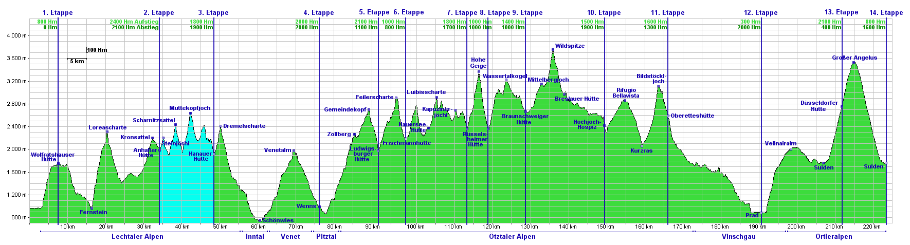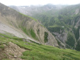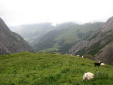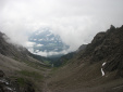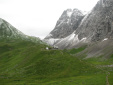 | Am dritten Tag wurde das Wetter nicht besser, aber immerhin auch nicht schlechter. Die Passübergänge konnte man trotz Nebel gut finden, die Markierungen waren in einem guten Zustand. Auf den Muttekopf hab ich wegen der schlechten Sicht verzichtet, die Etappe war sowieso lang genug. Die Hanauer Hütte ist sehr schön gelegen, auf einem Vorsprung (siehe Foto 04)! Ab dort war wieder mehr los auf den Wegen, da dort die klassischen Etappen vom E4 losgehen. Davon war ich aber insgesamt nur ein paar Stunden betroffen, es war also kein Problem. |