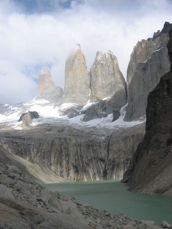 Man braucht schon Glück, um einen wolkenfreien Blick auf die Torres haben zu können. Ich hatte auf diesem Foto schon eine der besseren Aussichten. Wenn man genug Zeit hat, lohnt es sich, einfach paar Stunden zu warten, das Wetter ändert sich schnell.
