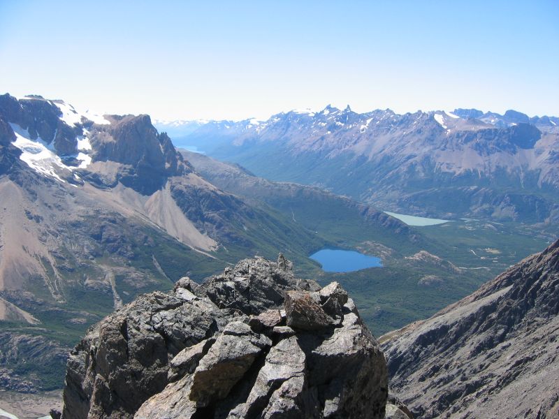 Man kann 3 Seen sehen, der letzte ganz hinten ist der Lago del Desierto. Von dort aus kann man in 1-2 Tagesmärschen zum Lago O'Higgins gelangen. Dort fährt jeden Freitag eine Fähre zum Dorf Villa O'Higgins, welches das südliche Ende der Carretera Austral ist.