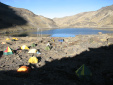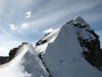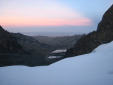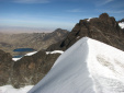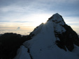 Das Condoriri-Gebiet ist wirklich wunderschön, und gar nicht weit weg von La Paz! Dort hab ich den Pequeno Alpamayo bestiegen, eine Traumtour! Am ersten Tag latscht man nur ans Basecamp am See (Laguna Chiar Khota). Am nächsten Tag gehts dann zuerst den Gletscher rauf bis zum Vorgipfel Tarija (Route siehe Foto 06), wo bei uns langsam die Sonne aufging. Vom Tarija-Gipfel muss man ungefähr 100 Höhenmeter in einen Sattel absteigen, von dem aus der Aufstiegsweg über den scharfen Firn- und Eisgrat bis zum Hauptgipfel startet.