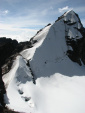 The Condoriri area is really gorgeous, and not really far away from La Paz! I climbed the Pequeno Alpamayo there, a stunning tour! The first day, you only have to walk to the basecamp at Chiar Khota lake. The next day, you have to ascend on the glacier until the secondary peak Tarija (see photo 06 for trail), where had breakfast at sunrise. From the Tarija peak, the route descends about 100 height meters into a saddle, where the ascent to the main summit starts, on a sharp ice and firn ridge.