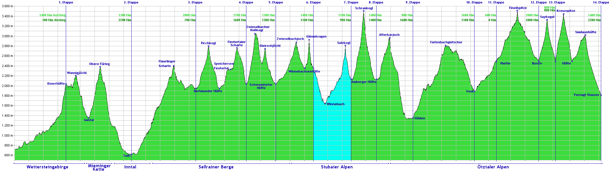 Etappenübersicht:
